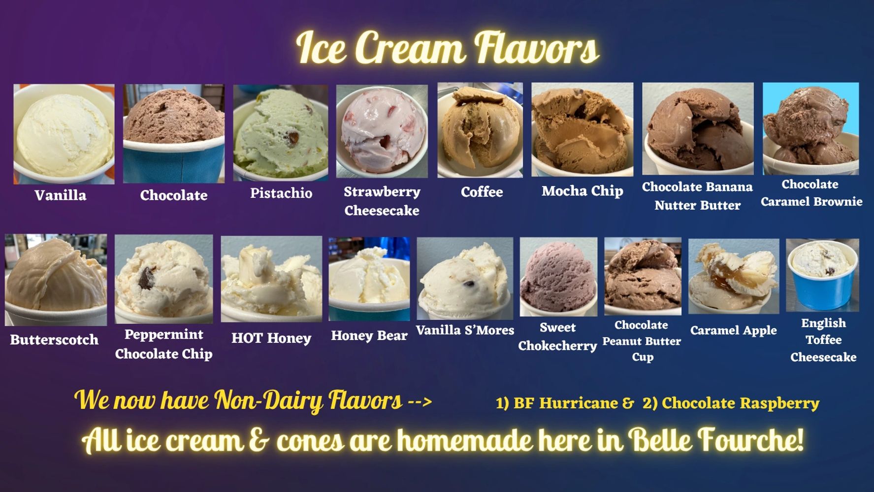 Ice Cream and Fudge Flavors rotate. Check our website or facebook page for the most up to date list of flavors.